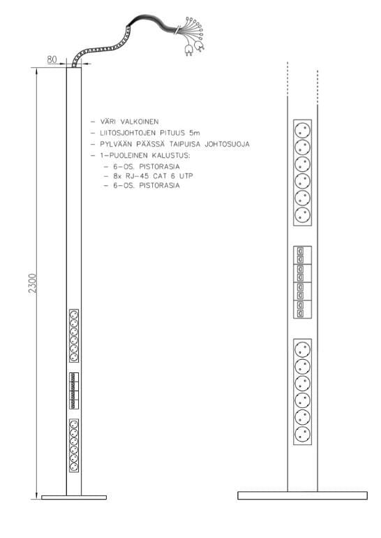 Flyttbar svart grenstav med 12xstikk og 8xdata FTP