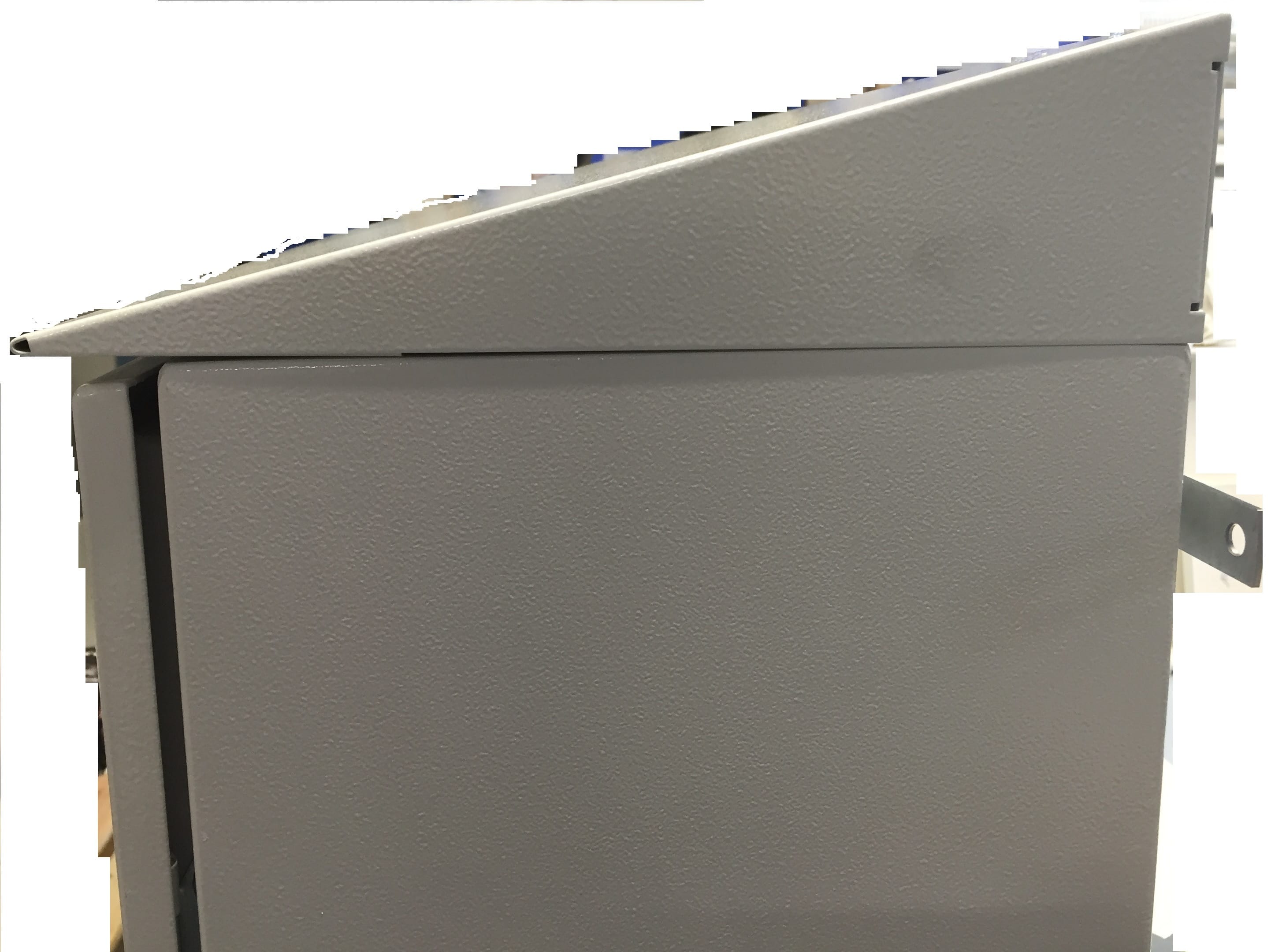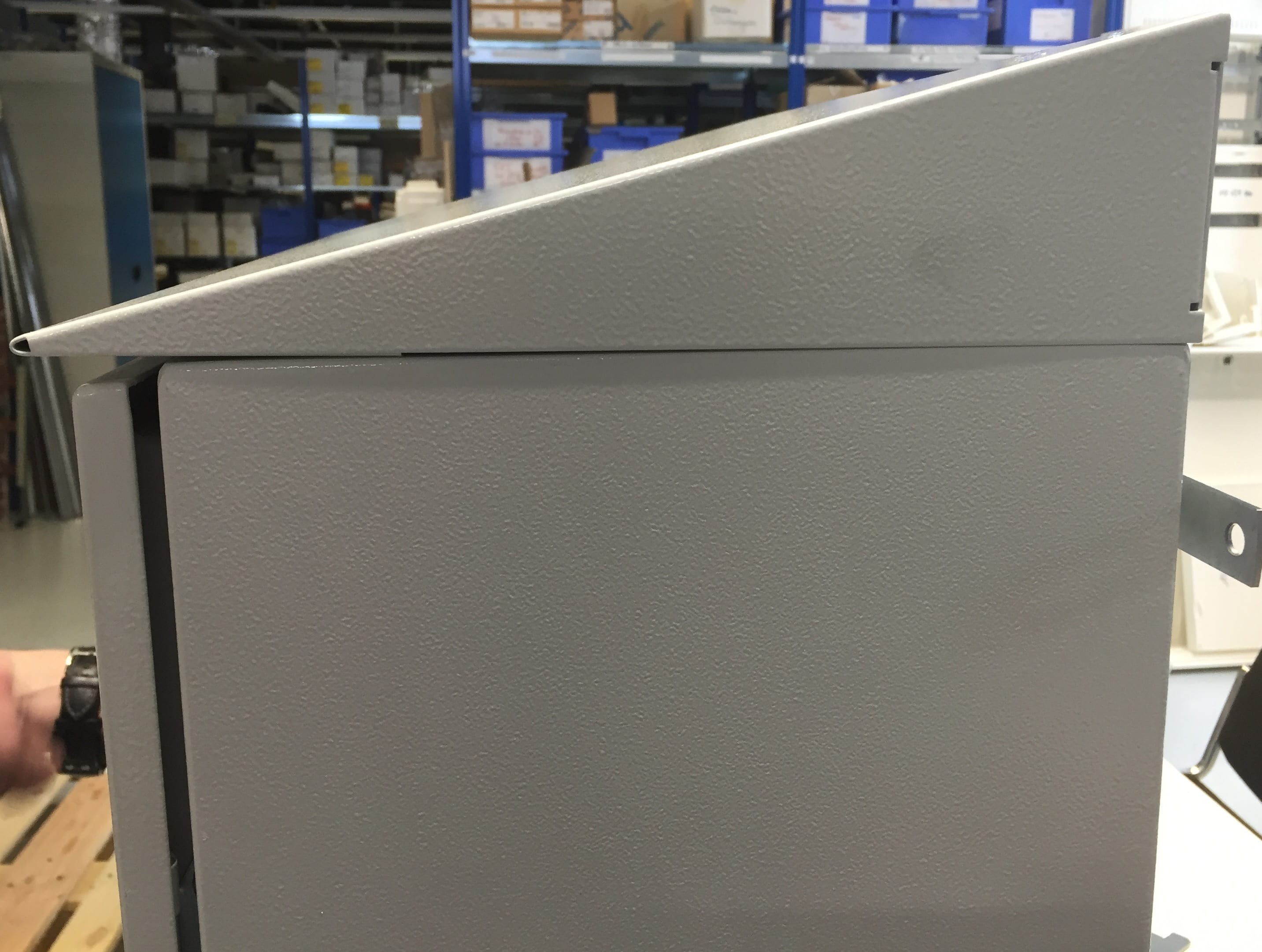 Tak til 55 cm bredde - 2 felt - vegg-/ golvskap IP54. Rustfritt metall. Farge RAL 7035 (andre farger kan bestilles). Kan monteres sammen med nye skap, eller ettermonteres på eksisterende skap.