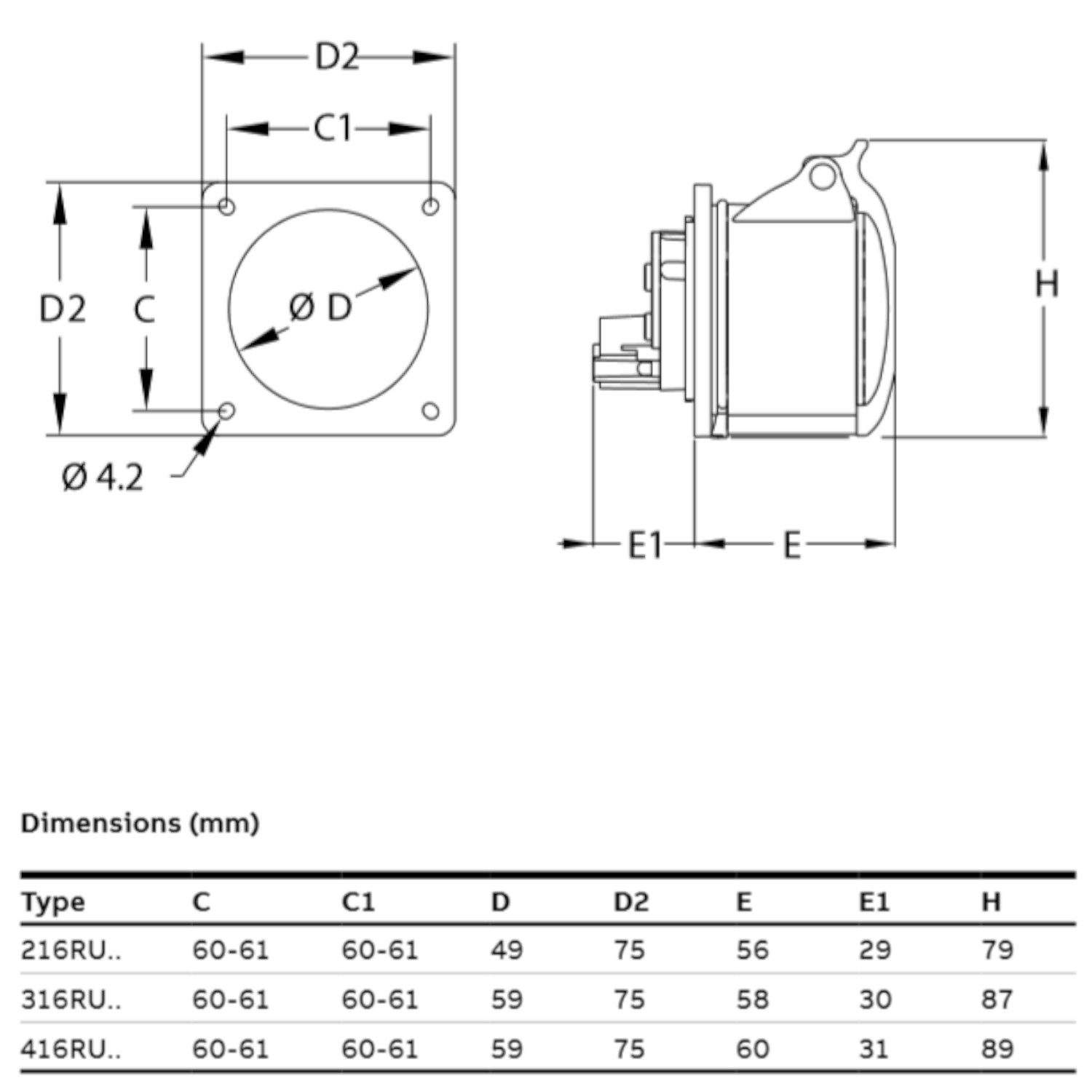 Hauge - IPS AUU 216RU6 PANEL-STIKKONTAKT IP44 - 1SEH320546R4502