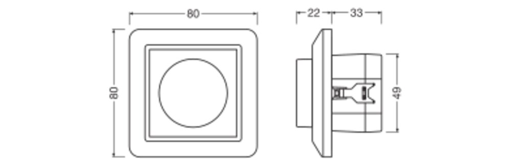 - Utskiftbart frontdeksel med kompatible lysstyringsdeksler av BUSCH-JÄGER, GIRA, JUNG, SCHNEIDER, BERKER, SIEMENS
