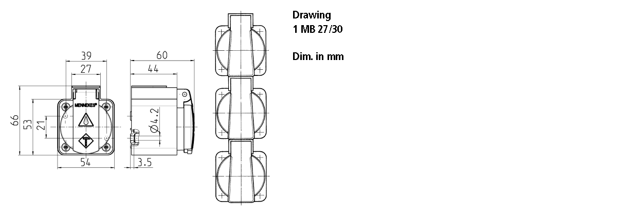 Mennekes - 10083,16A2P+E 230V Veggmontert SCHUKO-svart,IP 44 - 10083