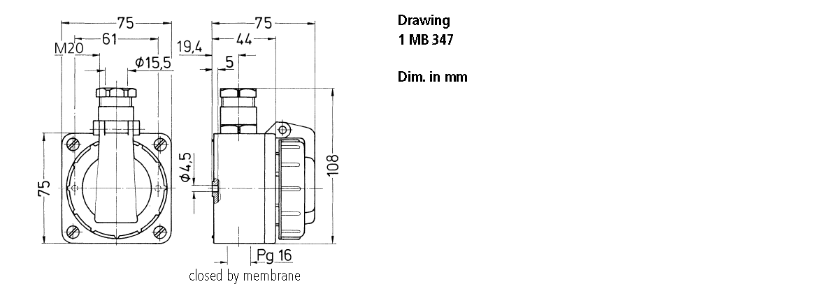 Mennekes - 10863,16A2P+J 230V Veggmonter SCHUKO IP68 - 10863