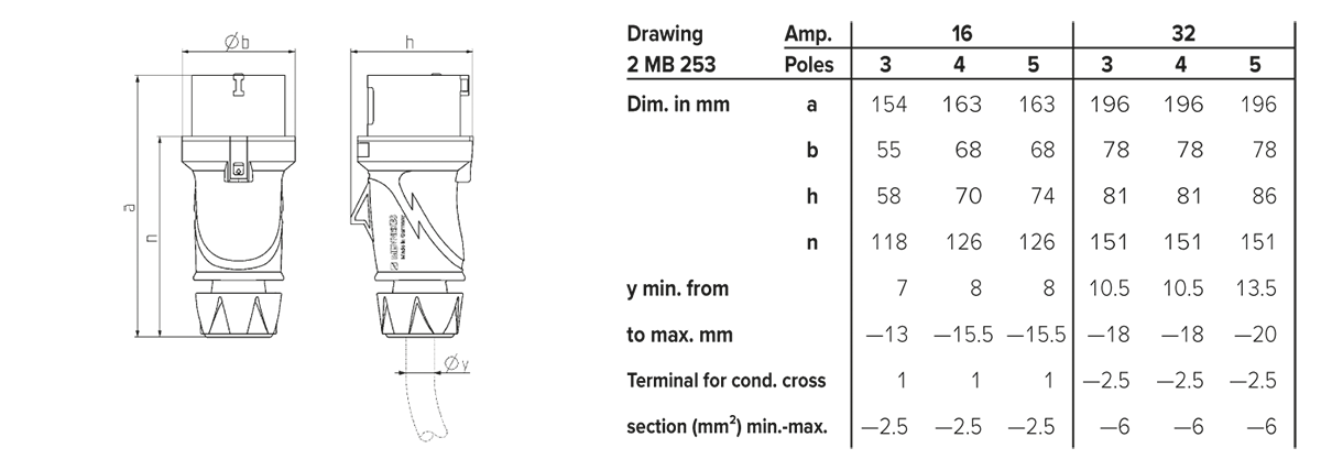Spenning ihht. EN 60309-2 - 400 V (50 + 60 Hz) rød