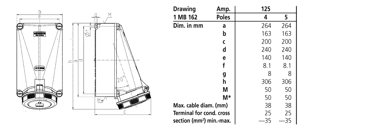 Mennekes - 143,125A5P 6H400V Veggmontert apparat Uttak IP67 - 75968