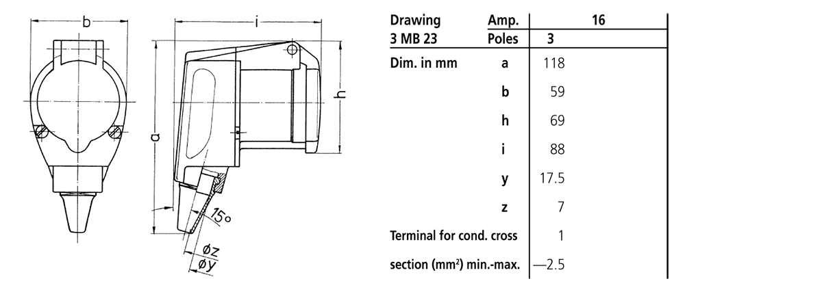 Mennekes - 1438, 16A3p6h 230V Skjøtekontakt Vinklet IP44 - 76474