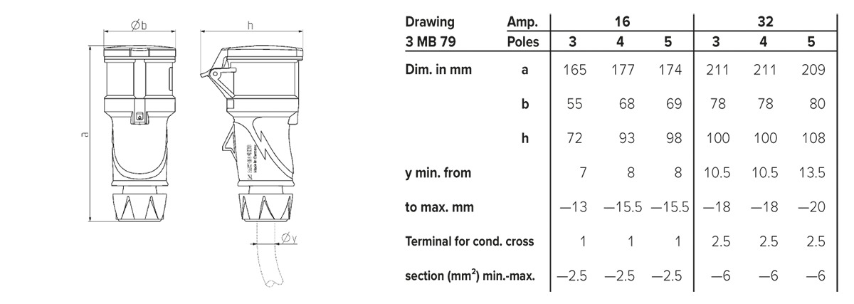 Mennekes - 14506, 16A4P 6H 400V Skjøtekontakt PTXtra IP54 - 14506