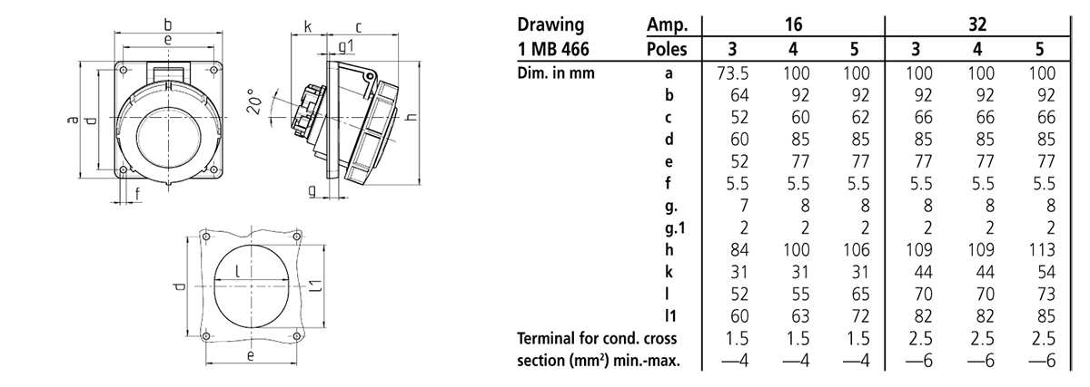 Mennekes - 1804,32A4P 9H230V Panelmontert uttak IP67. Hurtigkobling. - 1804