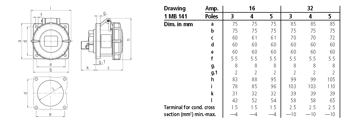 Mennekes - 221A,16A4p9h 230V Panelmontert apparat Uttak IP67 - 221A