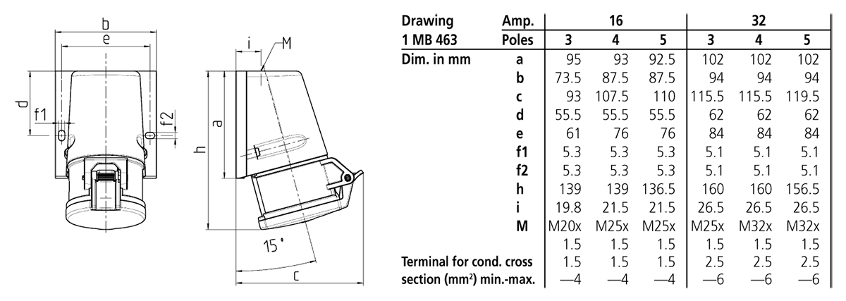 Mennekes - 27001,16A3p6h 230V Veggmontert apparat Uttak IP44 med liten kapsling - 27001