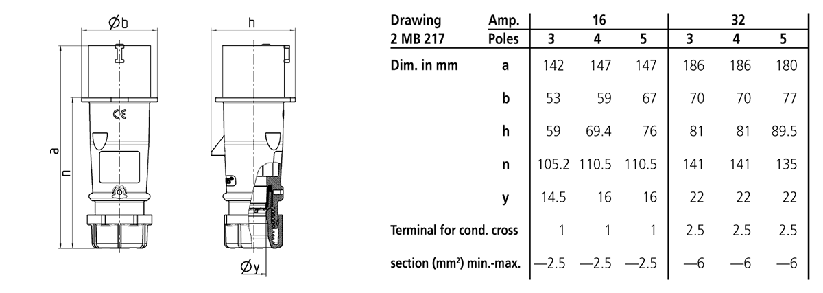 Spenning ihht. EN 60309-2 - 230 V (50 + 60 Hz) blå