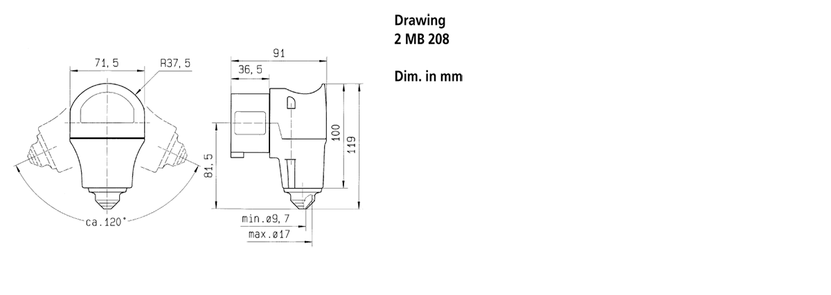 Mennekes - 3980,16A5p6h 400V Plugg Vinklet IP44 Mulighet for å vri huset også. Med forniklede kontakter.