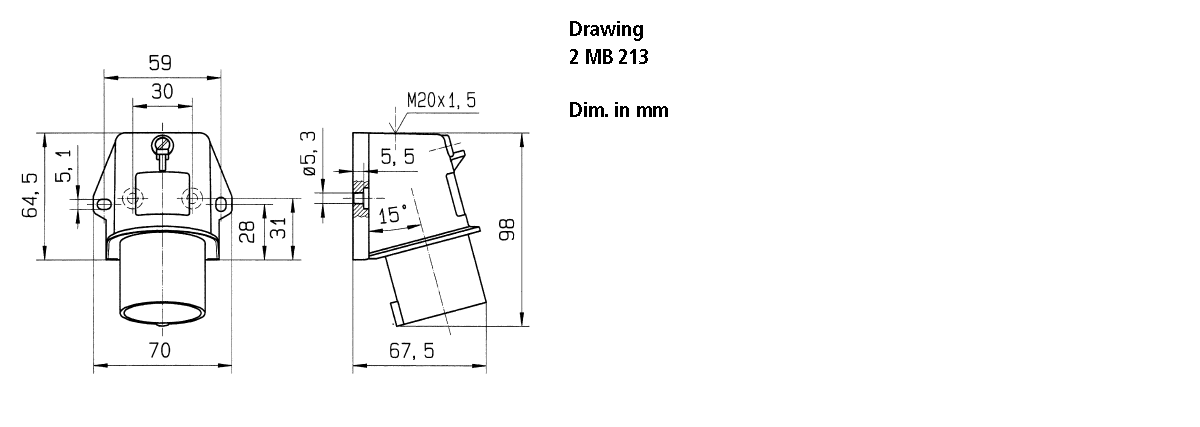 Mennekes - 844,16A3P 6H230V Veggmontert apparat Inntak IP44. Liten - 76234