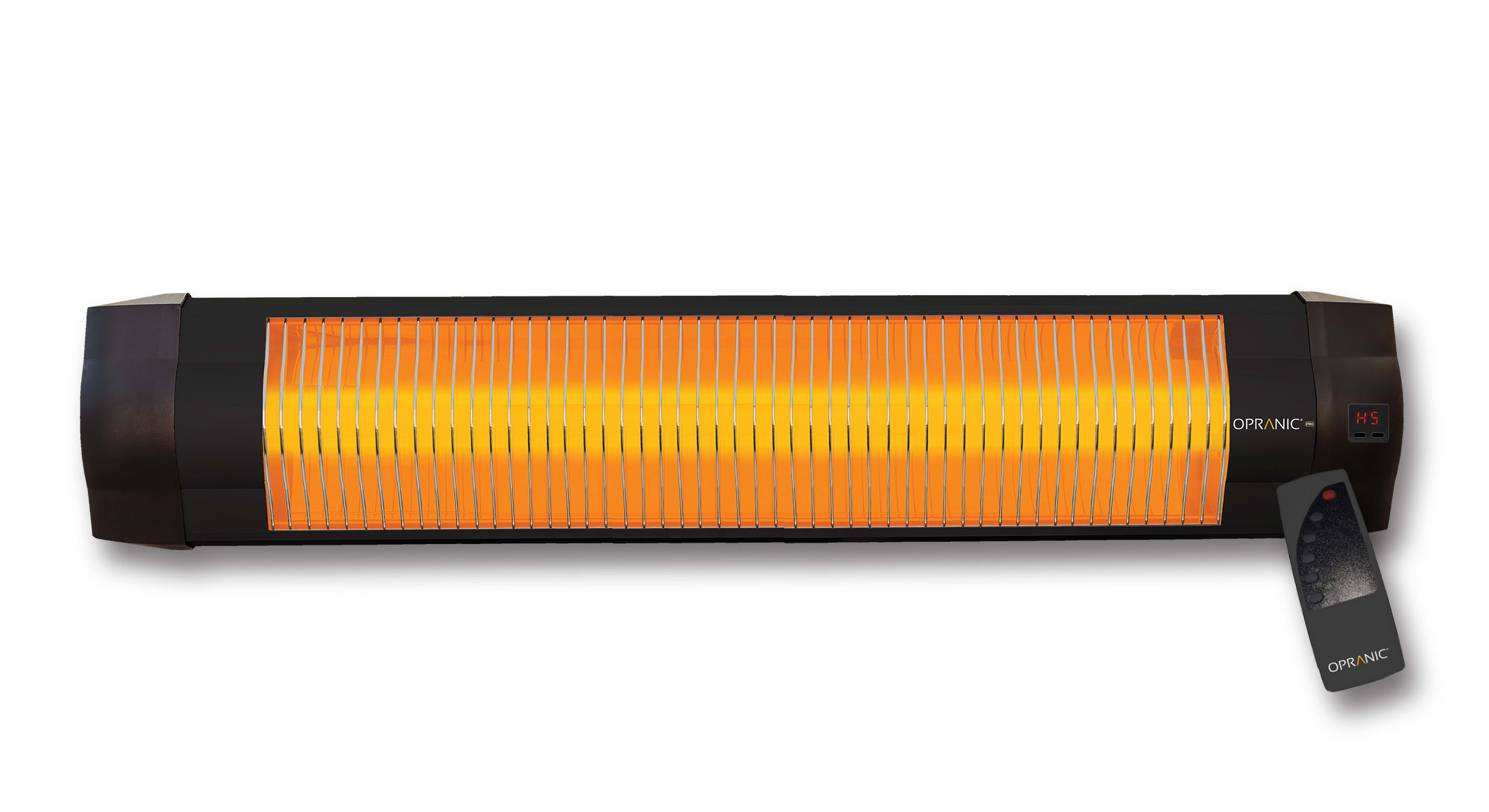 Opranic Pro - Lava infrarød terassevarmer i 1400 til 2300W (regulert i fem trinn) med Opranic IR-teknologi som ger meget god absorpsjon av folk flest og objekter, aluminium chassis, fjernkontroll. For vegg eller takmontering, må bare brukes i horisontal stilling. Monteres min. 1,8 m. over gulvet og min. 0,4 m fra hjørner. Kan bruke varmeren i baderom og utendørs, IPX5, 8000 timer drift.