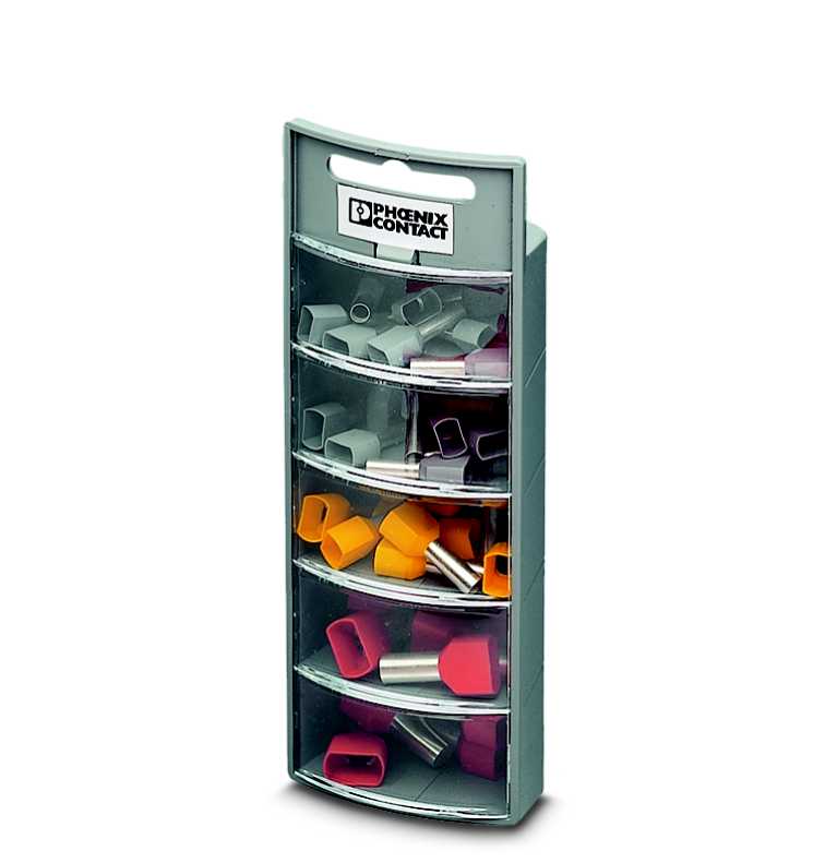 Sortimentboks, utstyrt med TWIN-endehylser i henhold til DIN 46228-4, CSA-sertifisert, 20 stk. AI-TWIN 2x4-12 GY, 10 stk. av hver AI-TWIN 2x6-14 YE, AI-TWIN 2x10-14 RD