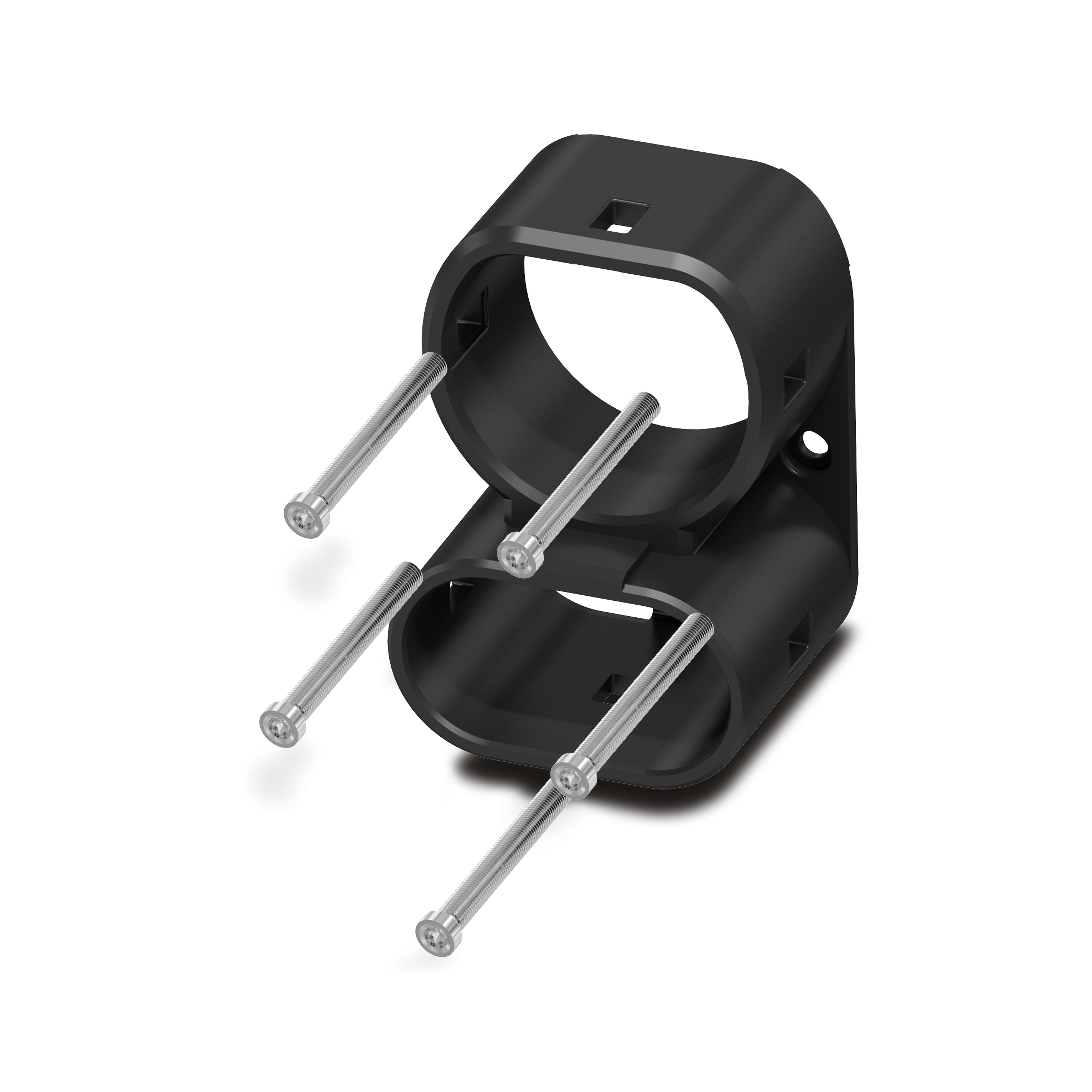 CHARX connect, Reparasjonssett, Tilbehør, for utskiftning av plugghoderammen på kjøretøyladeplugger, med utskiftbar plugghoderamme, med 5 stk. M4X45-linsehodeskruer med Torx-sikkerhetsdrift, CCS type 2, IEC 62196-3, D-Line 1.1, C-Line, hus: svart, Huset til kjøretøyladepluggen trenger ikke å åpnes for å skifte ut plugghoderammen.