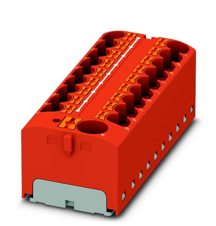 Fordelerblokk, nominell spenning: 450 V, nominell strøm: 32 A, tilkoblingstype: Innstikkstilkobling, Innstikkstilkobling, antall tilkoblinger: 19, tverrsnitt: 0,2 mm² - 6 mm², AWG: 24 - 10, bredde: 64,8 mm, høyde: 21,7 mm, farge: rød, monteringstype: sneppes på monteringsskinneadapter