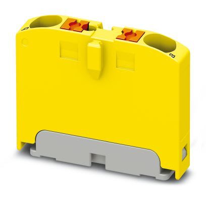 Fordelerblokk, Basismodul, nominell spenning: 450 V, nominell strøm: 24 A, tilkoblingstype: Innstikkstilkobling, tverrsnitt: 0,14 mm² - 4 mm², monteringstype: sneppes på monteringsskinneadapter, Direktemontering med flens, Skjøt, farge: gul