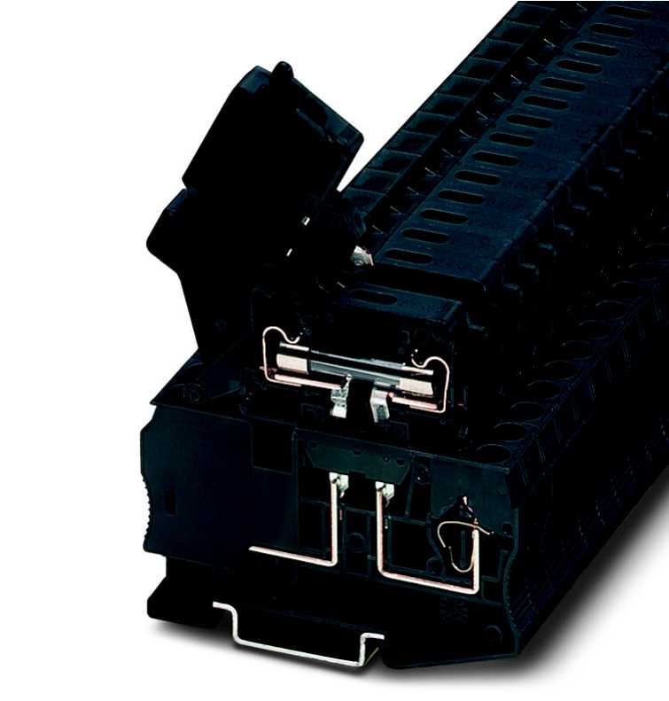 Sikringsrekkeklemme med hevearm, svart farge, for 6,3 x 32 mm G-sikringsinnsatser