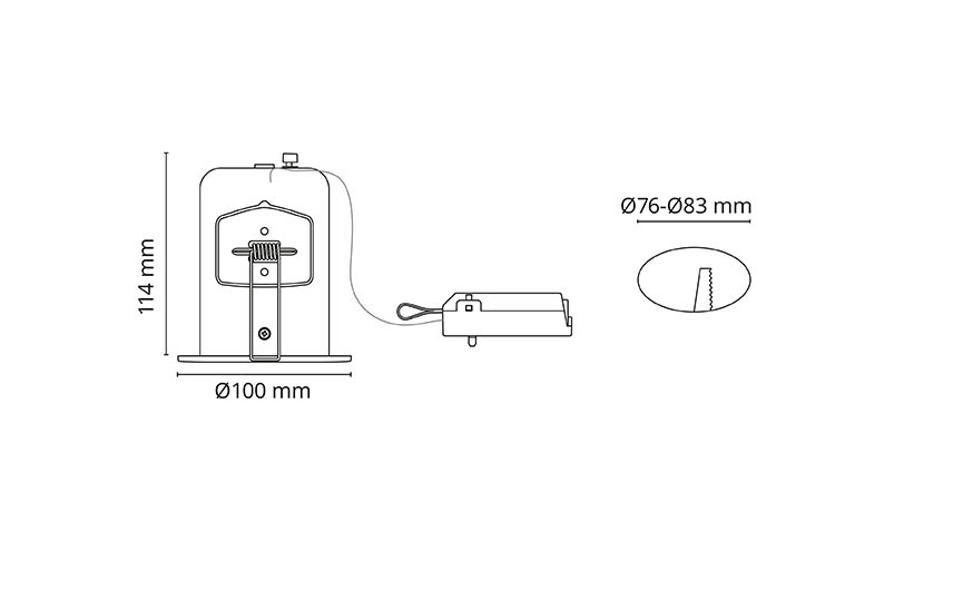 Passer i Ø76-84mm hull. Varmhvit(2700K) på LED med en lysspredning på 25° og 40 000 timer levetid.