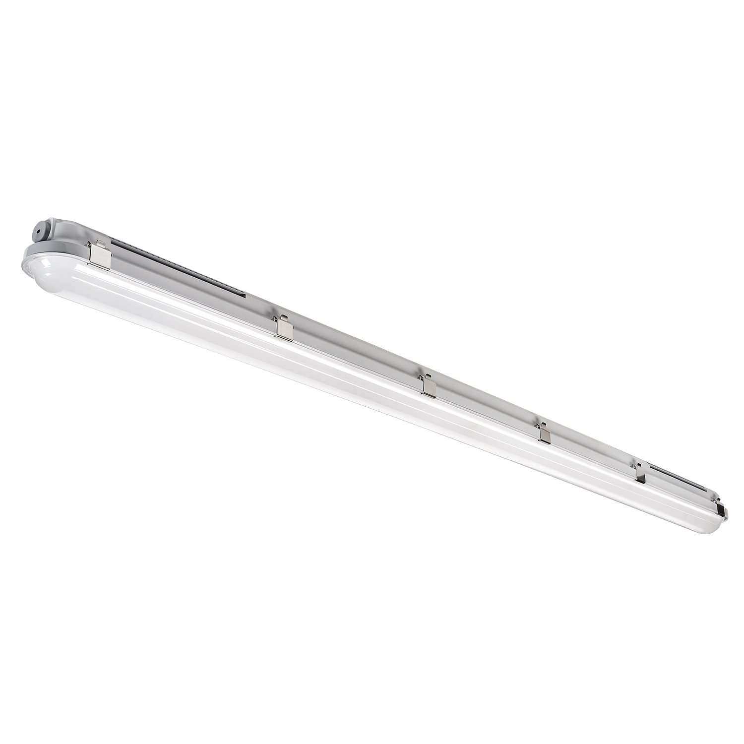 Tysnes 66 Pro er en svært effektiv og robust versjon i Tysnes 66 familien. Med 171lm/W, svært høyt lysutbytte (9430lm) og lang levetid (100.000t, L90/B10) er den prosjektvinneren for boder, garasjer og parkeringsanlegg. Armaturen er produsert i slagfast UV stabilisert polykarbonat (IK08) og komponentene tåler vibrasjoner og svært lave temperaturer (-40°C). Tysnes kan enkelt monteres direkte i tak med klips eller med wireoppheng. Kraftige stålklips festet til armaturen holder avskjermingen. Det er ledningsinnføring i begge ender og svekning for kabling bakfra. 5-/7-polet koblingsklemme med 5x2,5mm² gjennomgangskobling (+DALI) gir fleksibilitet for større installasjoner.