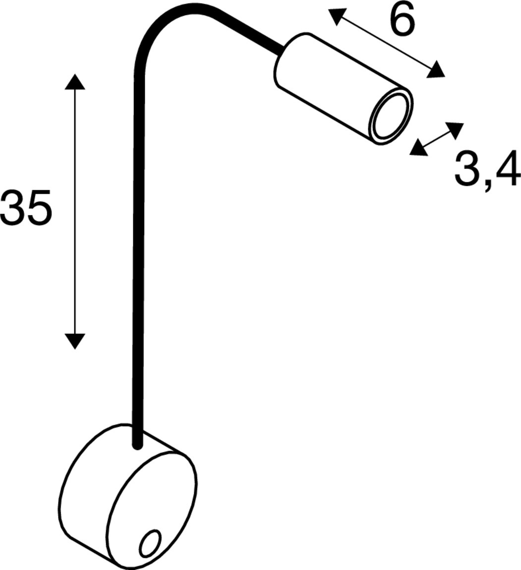 230V-displayarmatur for veggmontering fra DIO FLEX PLA-TE-serien, der rosett og hode er forbundet via en fleksibel arm. Armaturets bryter gjør at den kan tilpasses individuelt og er fleksibel i bruk. Armaturet kobles direkte til strømnet-tet (230 V). Alternativt finnes armaturet med utbyttbar LED-lyskilde med GU10-sokkel.