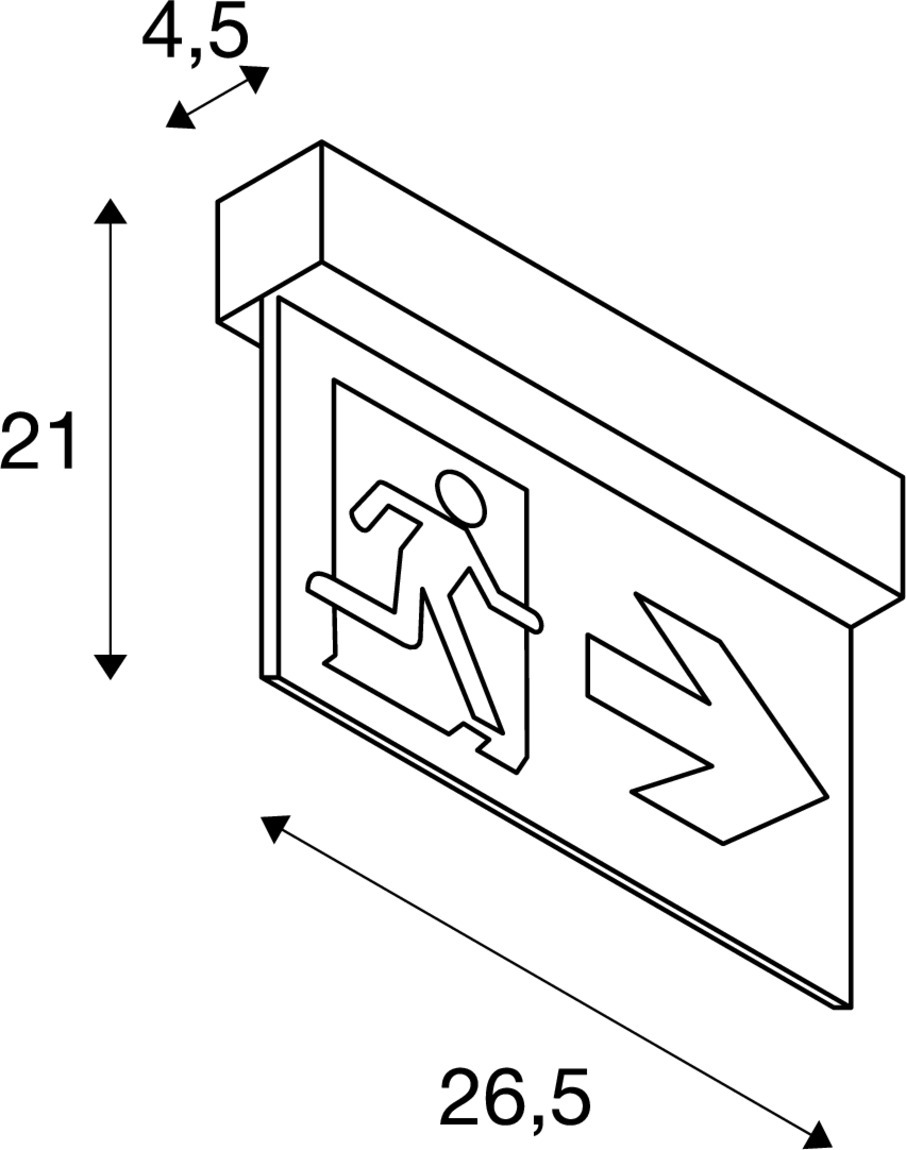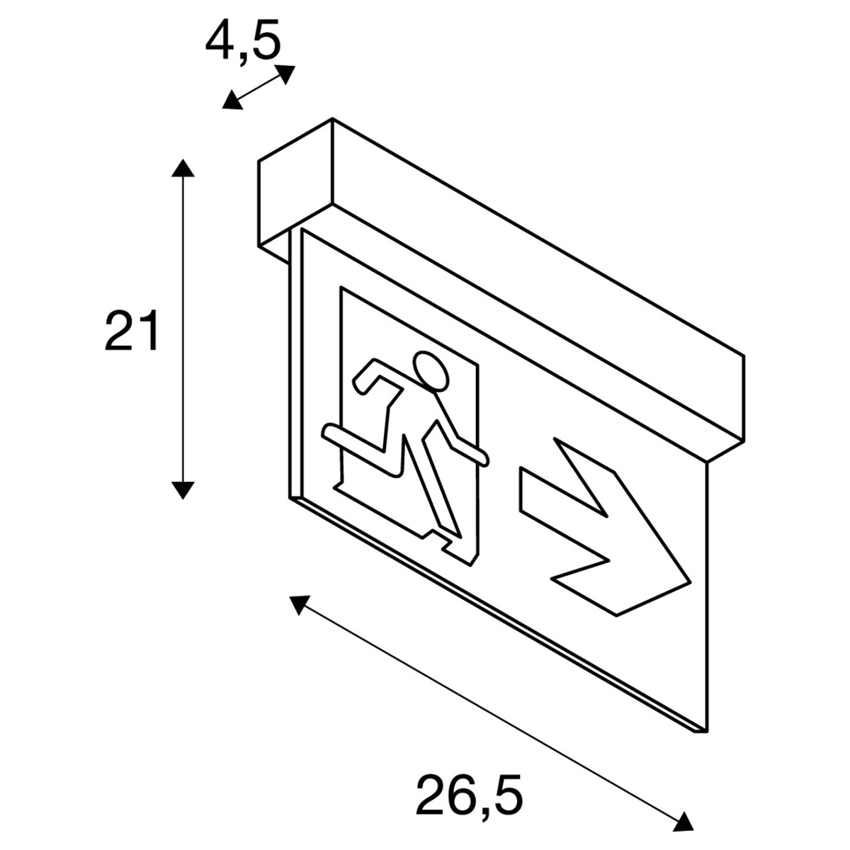 P-LIGHT 27, vegg- og takarmatur, nødutgangsbelysning, LED, 6000 K, hvit, L/B/H 26,5/4,5/21 cm, 3,5W