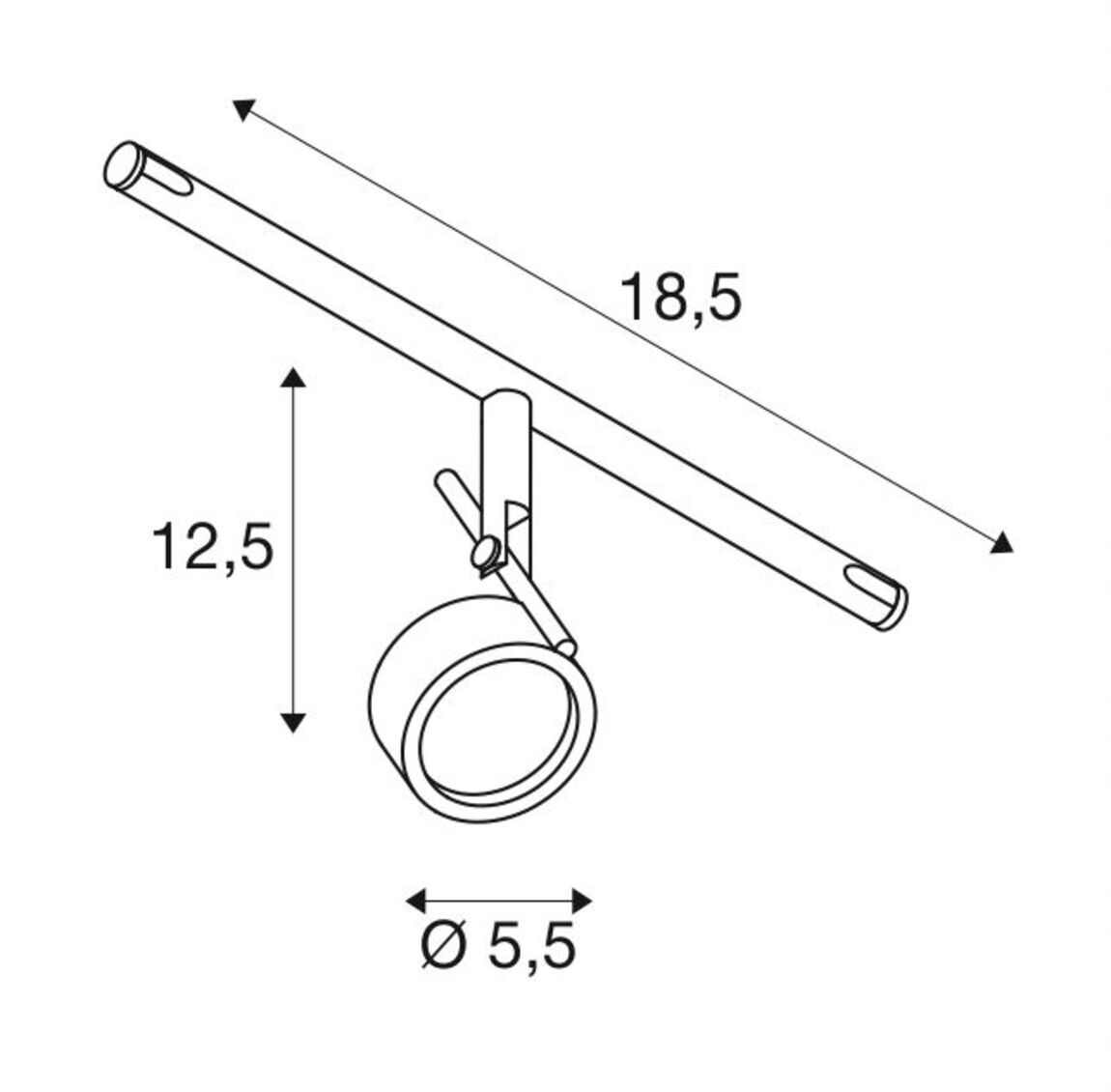 SALUNA spotlight til lavvolts-wire-system er i stål og kan dreies og svinges. Den integrerte GU5,3-sokkelen gjør spotlight velegnet for halogen- og LED-lyskilder.