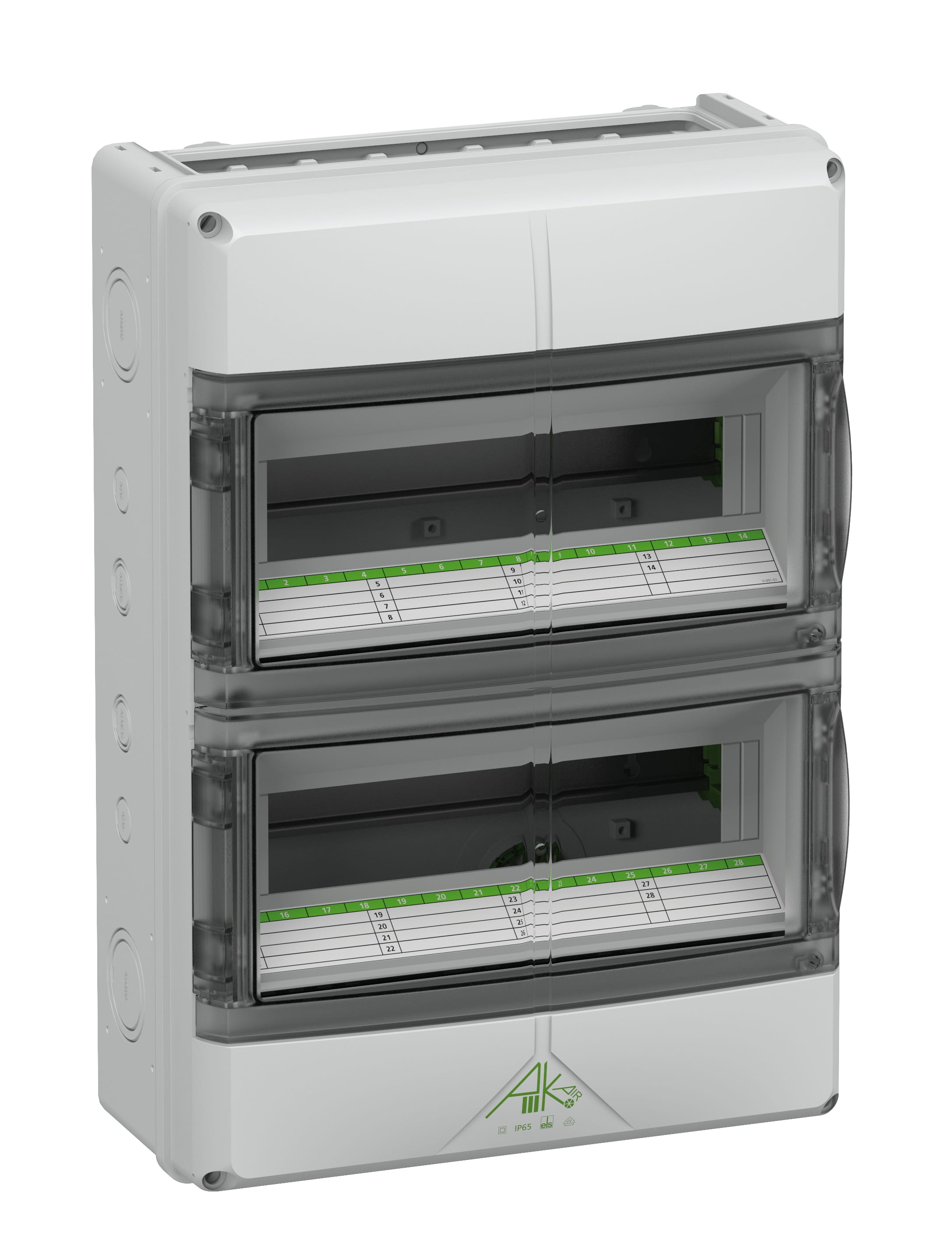 Vedlagt tilbehør: Dobbelmembranstuss: 1x M16, 5x M20, 2x M25, 1x M32, 1x M40, Skrukork, Dekke- og skriftstrimler