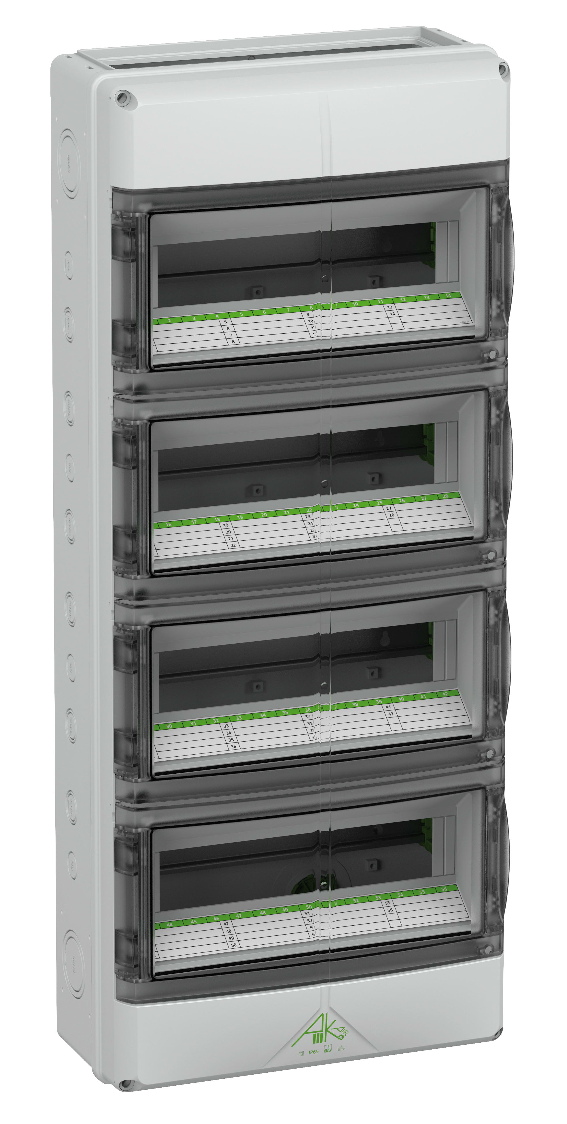 Vedlagt tilbehør: Dobbelmembranstuss: 2x M16, 10x M20, 4x M25, 2x M32, 2x M40, Skrukork, Dekke- og skriftstrimler