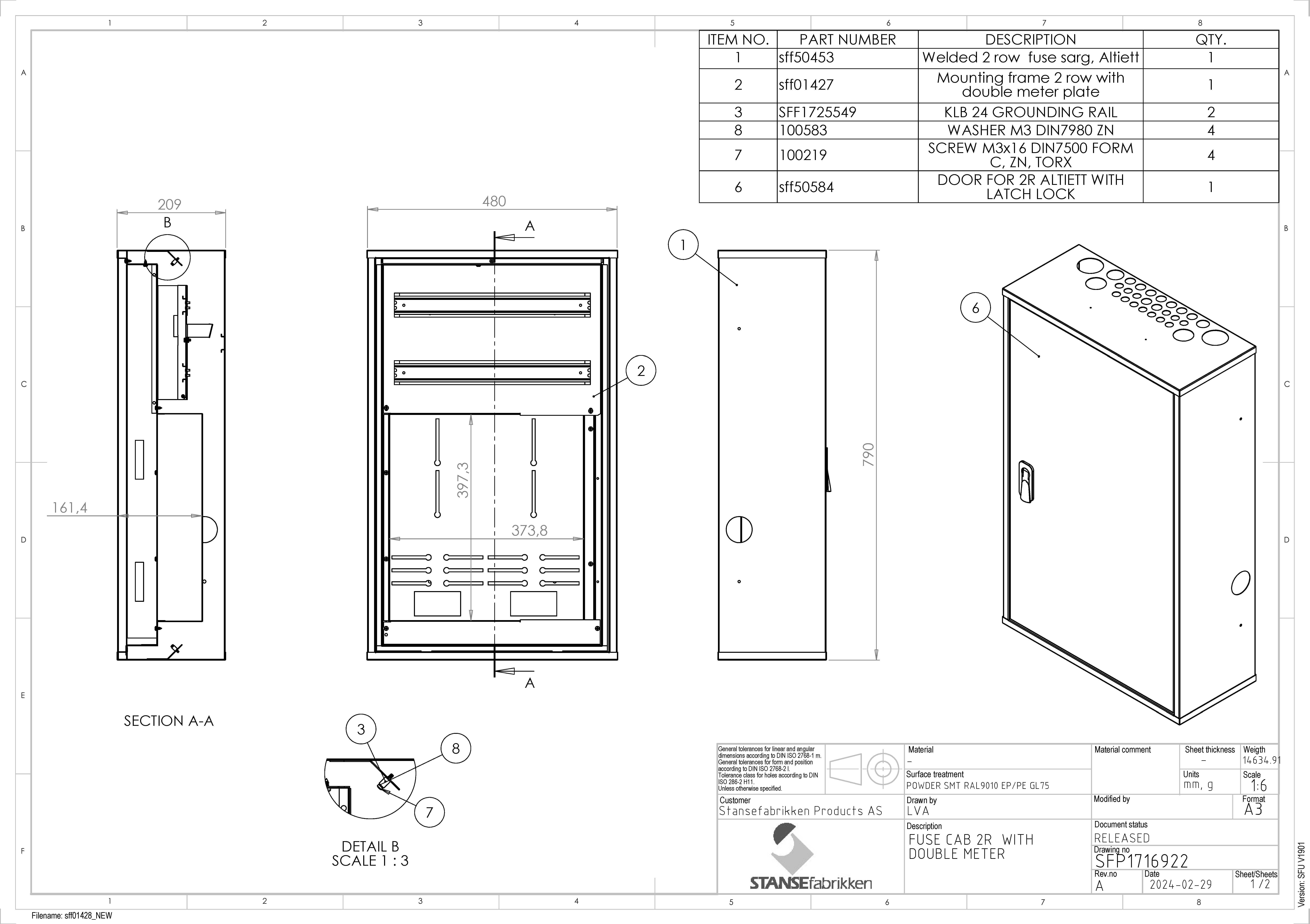Skapet kjennetegnes av smarte og effektive løsninger som sparer montasjetid og gir økt sikkerhet. Sikringsskinnene kan vippes frem for enkel og sikker kabeltilkobling.