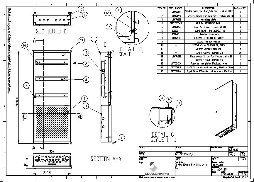 Stansefabrikken - FlexiBox 3 rad (54mod) innfelt-D med svakstrømsfelt - 1724422