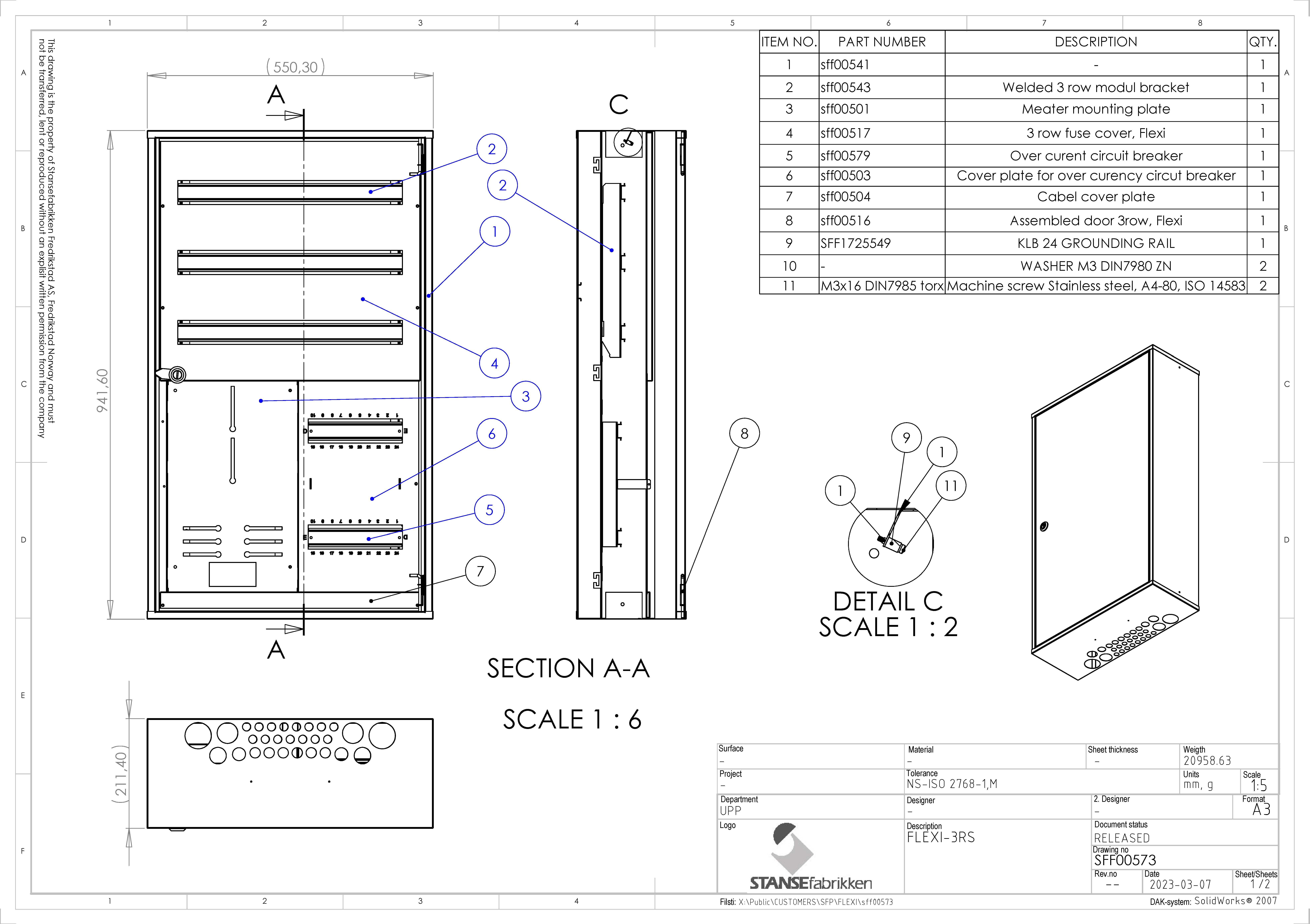 Stansefabrikken - Flexiskapet 3RS Sikringsskap (3x24/2x10 mod) og måler - 1750002