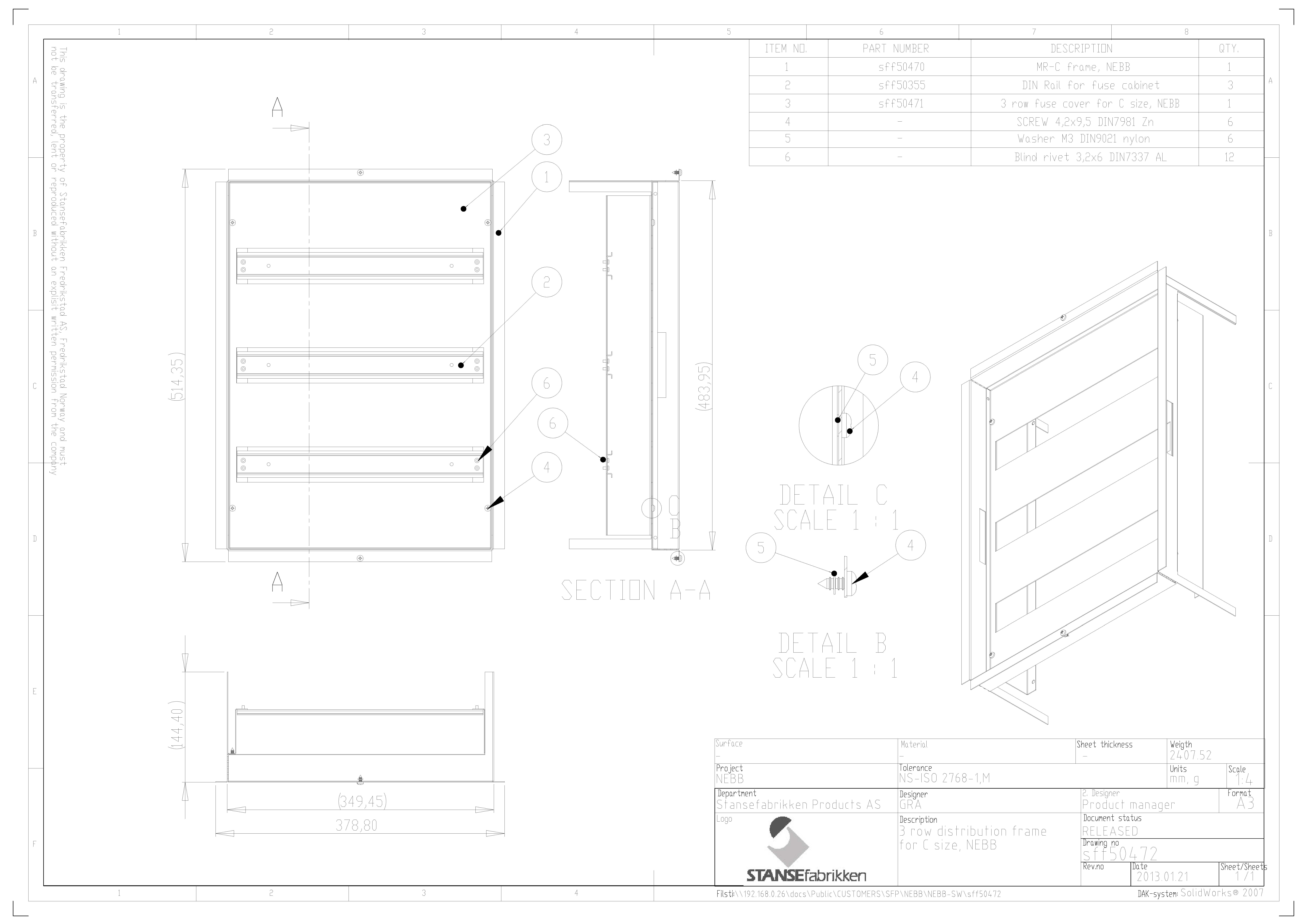 Stansefabrikken - Fordelingsramme for IP54/TS1 og Nebb C skap - 1740224
