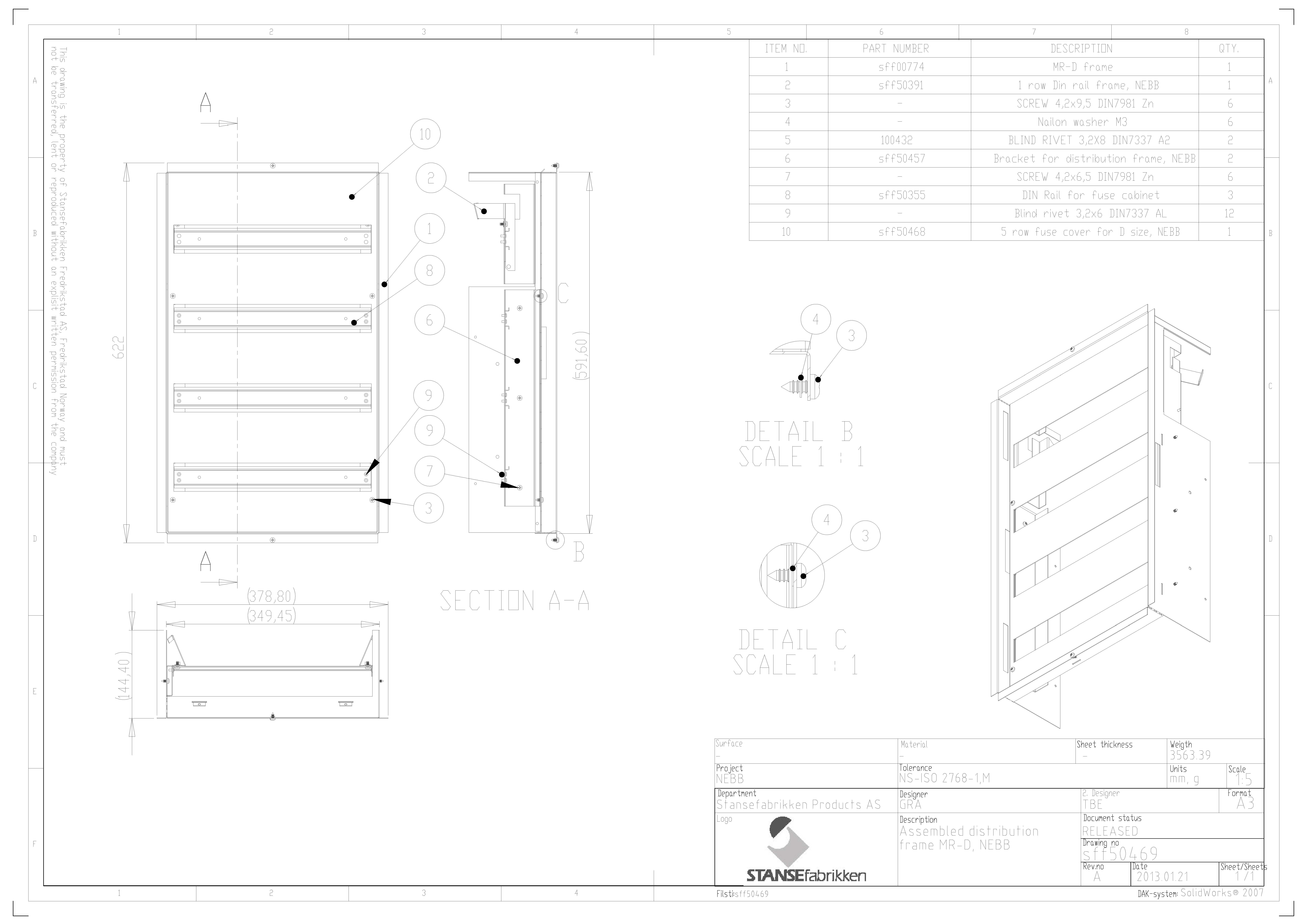 Stansefabrikken - Fordelingsramme for IP54/TS2 og Nebb D skap - 1740225