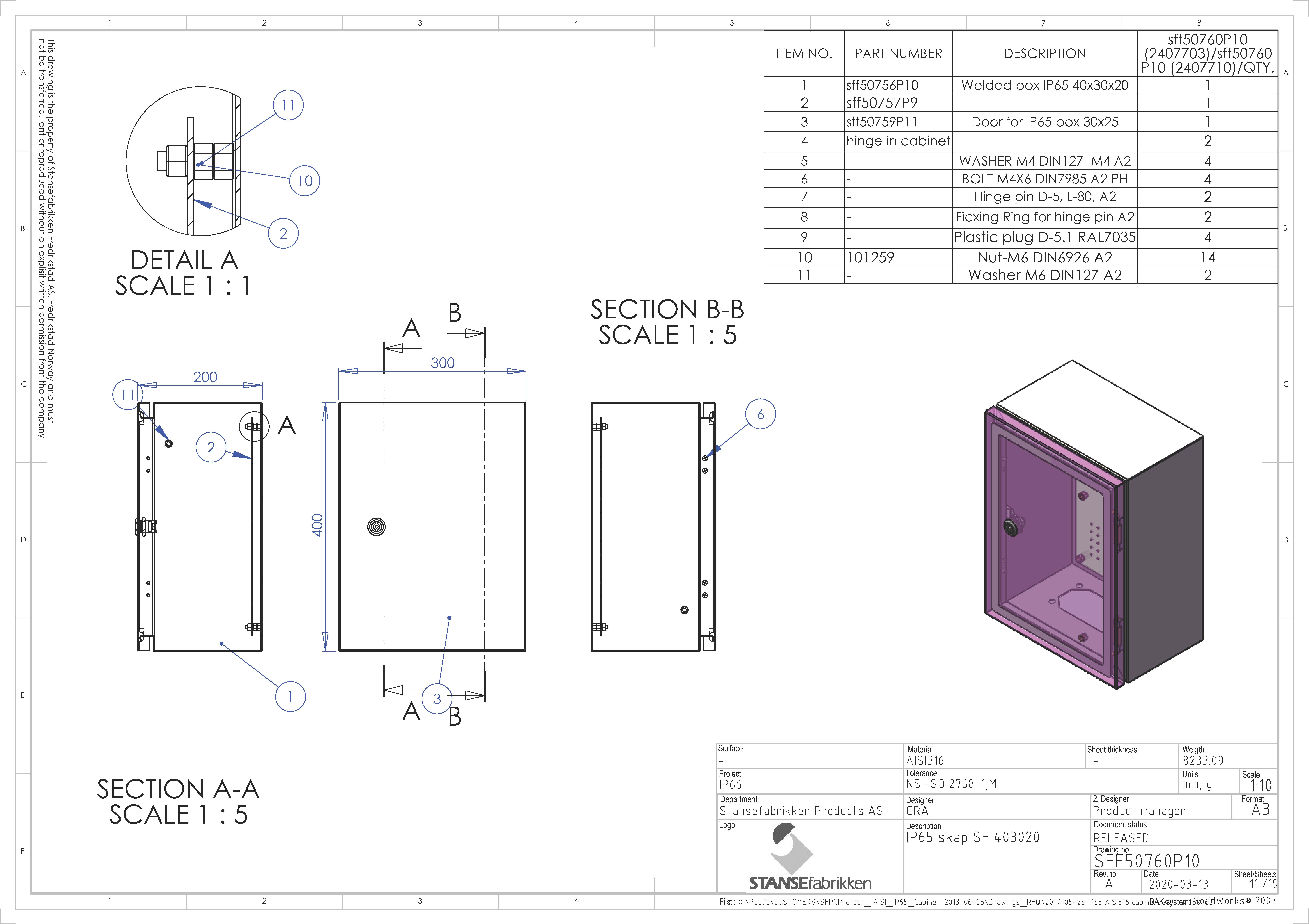 Stansefabrikken - IP65 skap SF 400x300x200 syrefast - 2407703