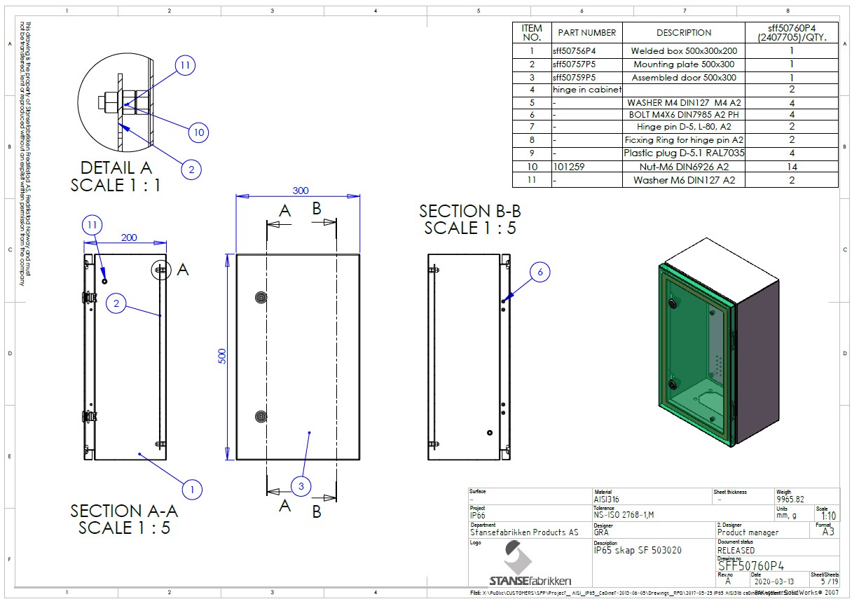 Stansefabrikken - IP65 skap SF 500x300x200 syrefast - 2407705