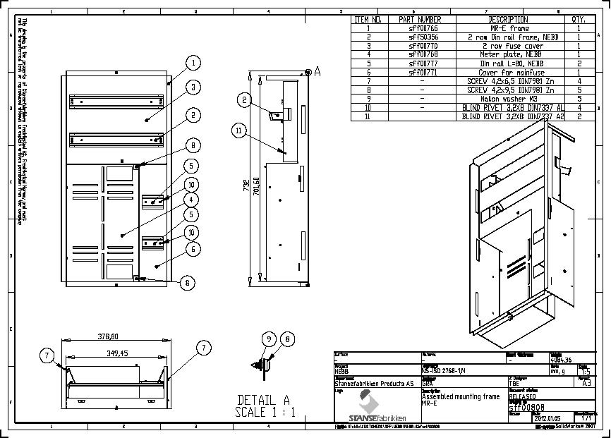 Montasjerammen kombinert med NEBB-skapet er i henhold til Tavlenormen EN60439-3.