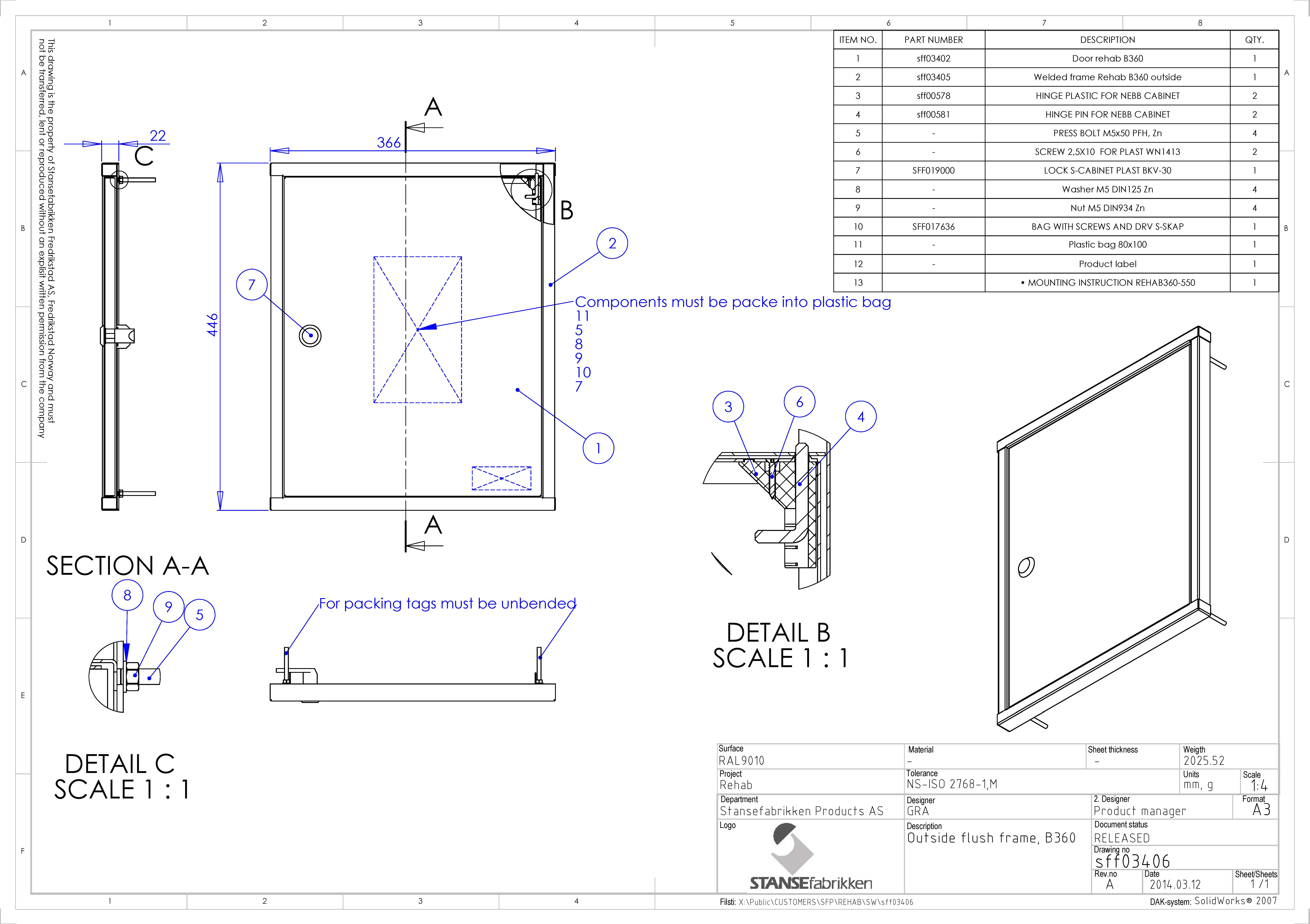 Stansefabrikken - REHAB B360 Front 1 Flush - 1716370