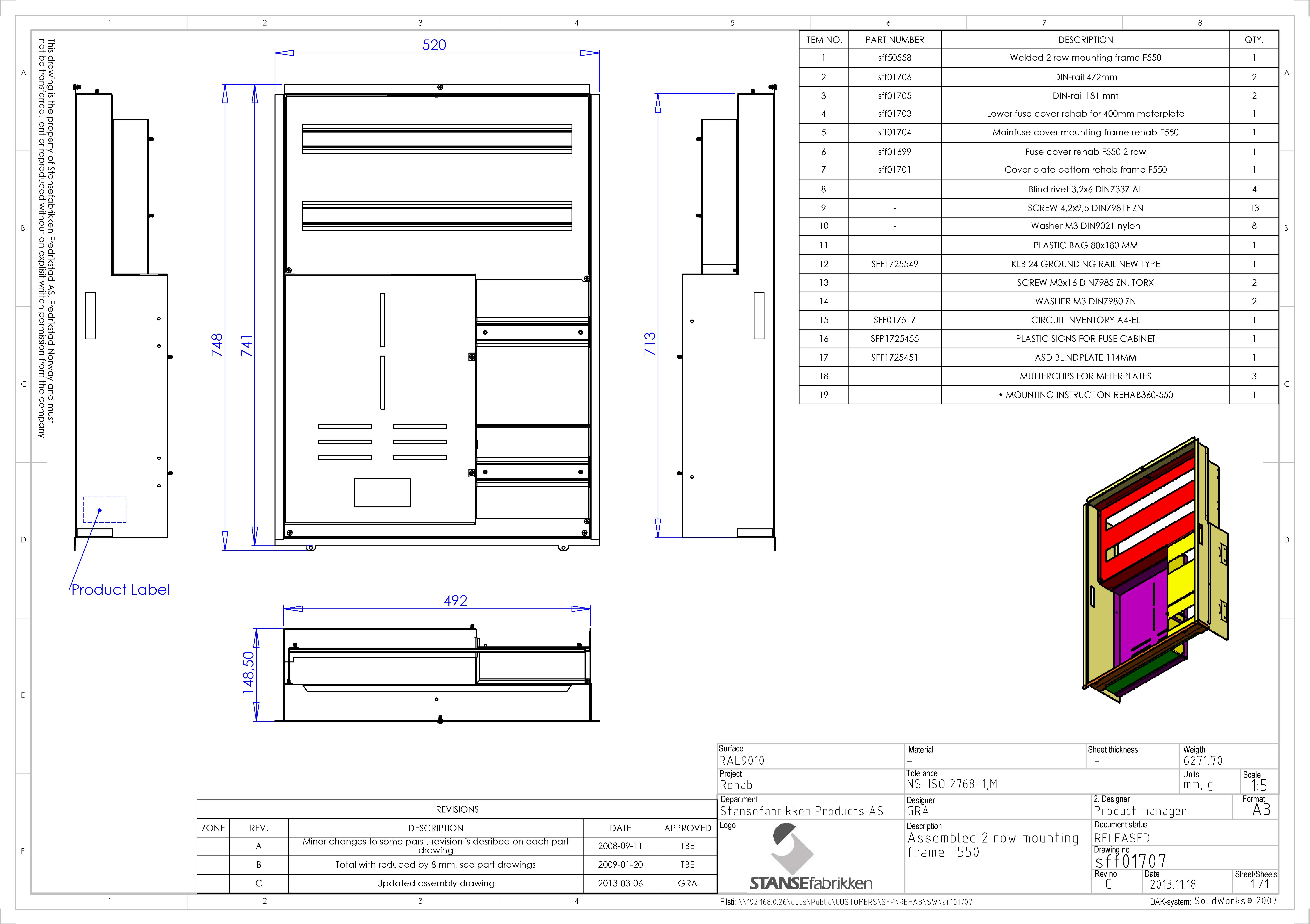 Montasjeramme for rehabilitering gamle Nebbskap F med bredde 550mm og høyde 770mm samt flat platedør . MÅ brukes sammen med ny front. Rammen har plass til 2 x 24 + 2 x 4 moduler samt standard målerplass. Rammen møter IP2XC kravet i tavlenormen.