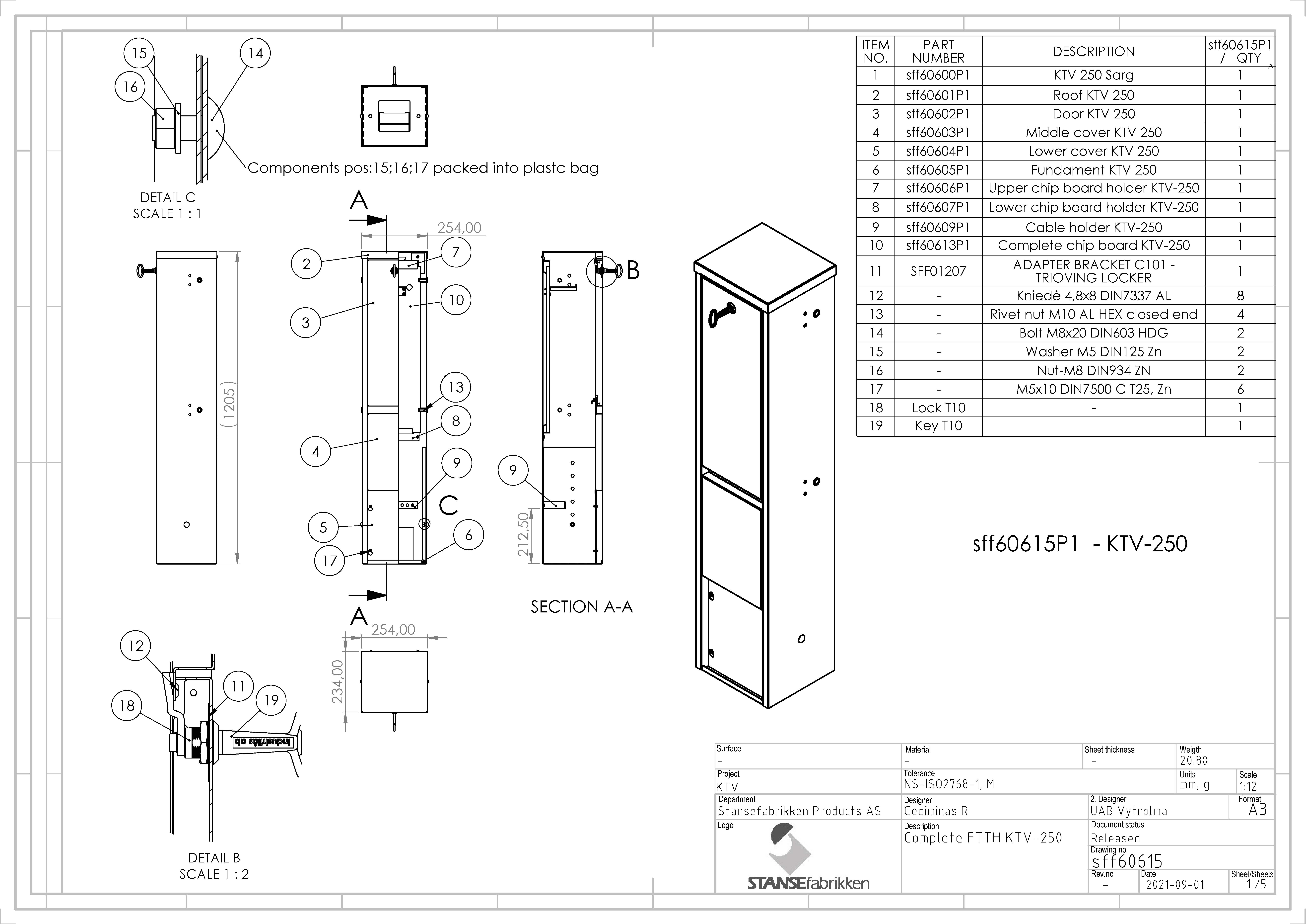Stansefabrikken - Utendørs kabelskap C101 lås / Trio låshull og sponplate - 2400004
