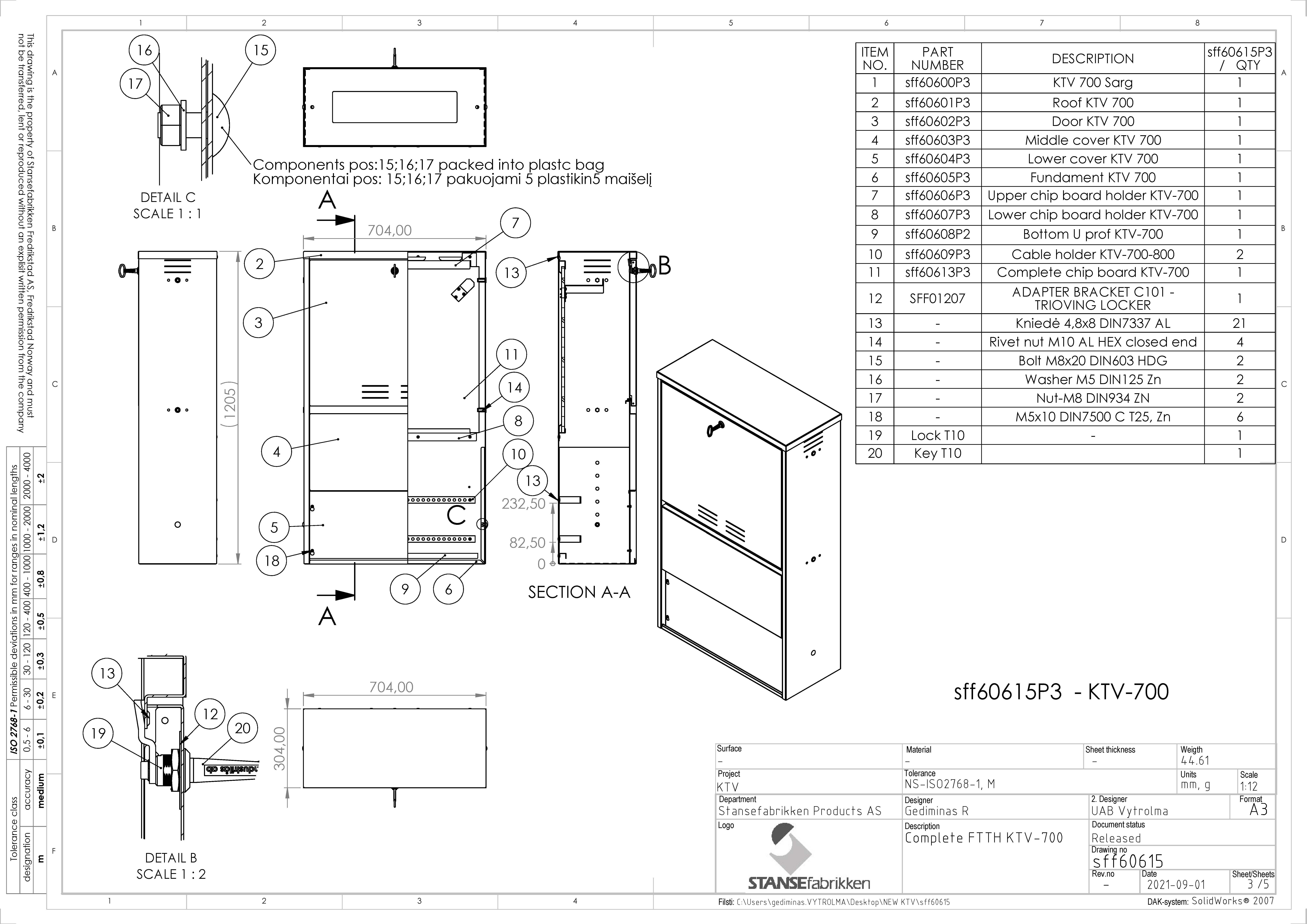 Leveres med integrert fundament/sokkel, montasjeplate og lås. Samt kabelfestebraketter i bunn av skapet og kveileører.