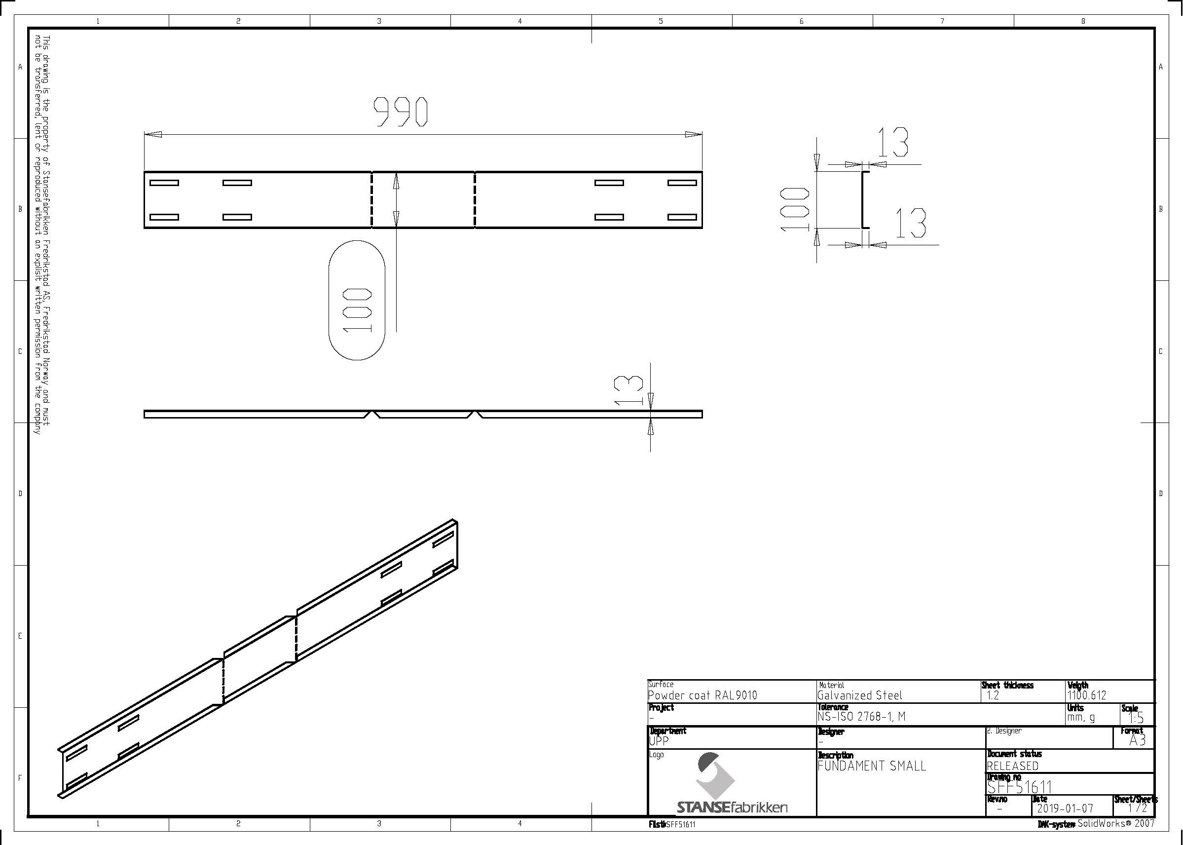 Jordbrakett for inntaksskap 1x160A. Materiale: Stål, behandling: El-zink.