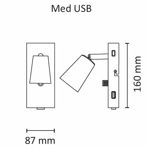 Unilamp - KONY LED USB Vegg Matt Hvit Sengelampe m/5,5W WarmDim LED - 3229472