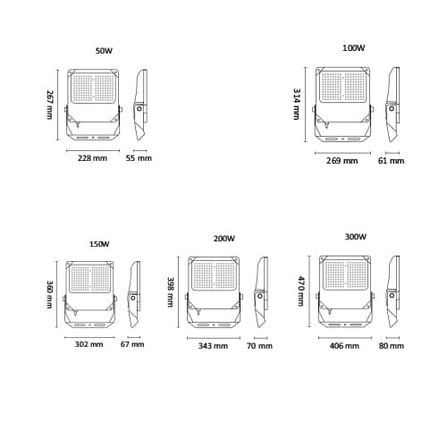 Unilamp - Power Marina 13000lm 100W 4K Grå Asym lyskaster IP66 - 3241991