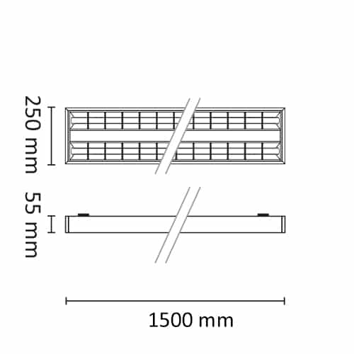 Unilamp - Surf 6lm 54W 3/4K 1500mm Utenpåliggende rasterarm. - 3336681