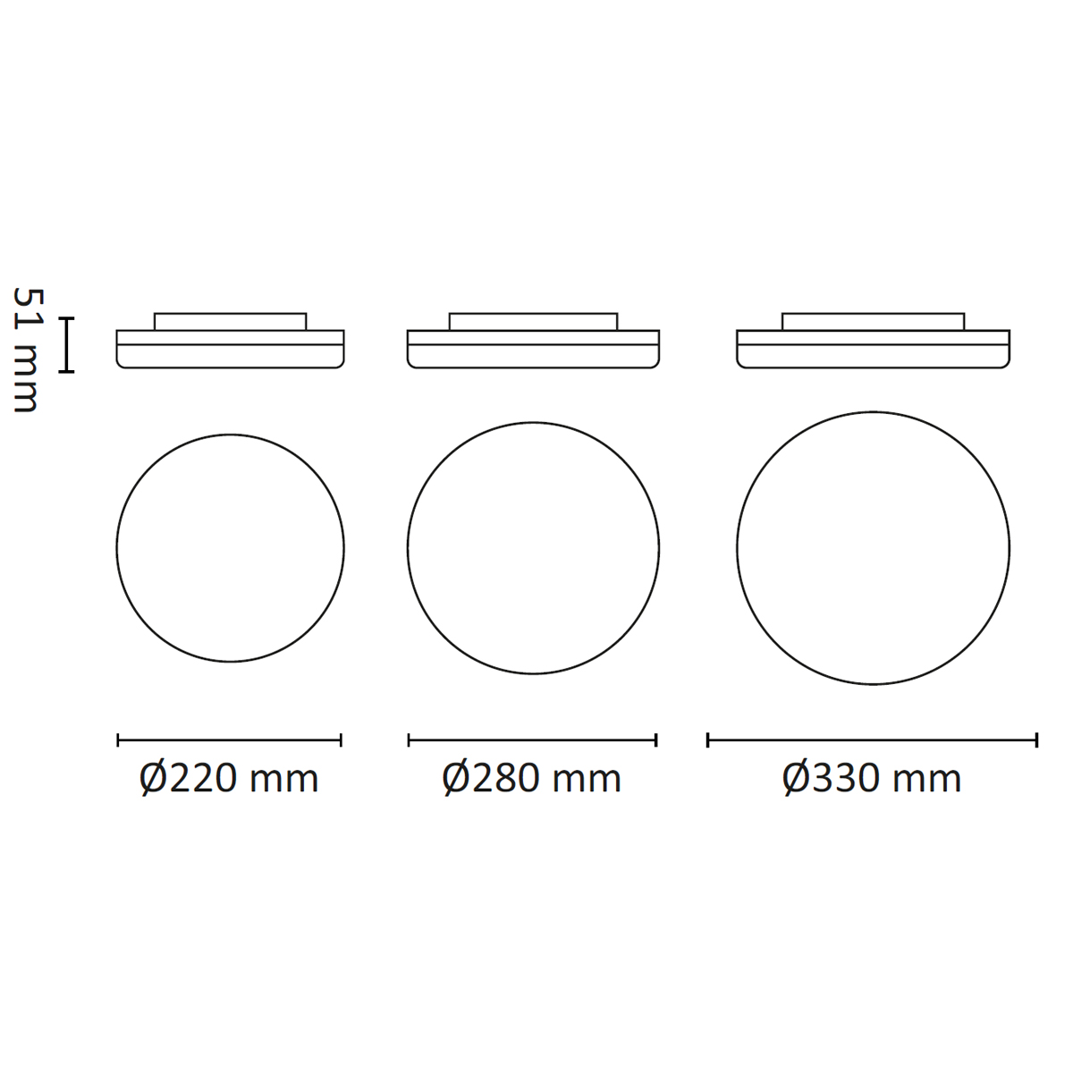 Denne serien armaturer lages i 3 forskjellige størrelser, 220/280/330 mm. Det er forskjellige lyseffekter på de ulike størrelsene.